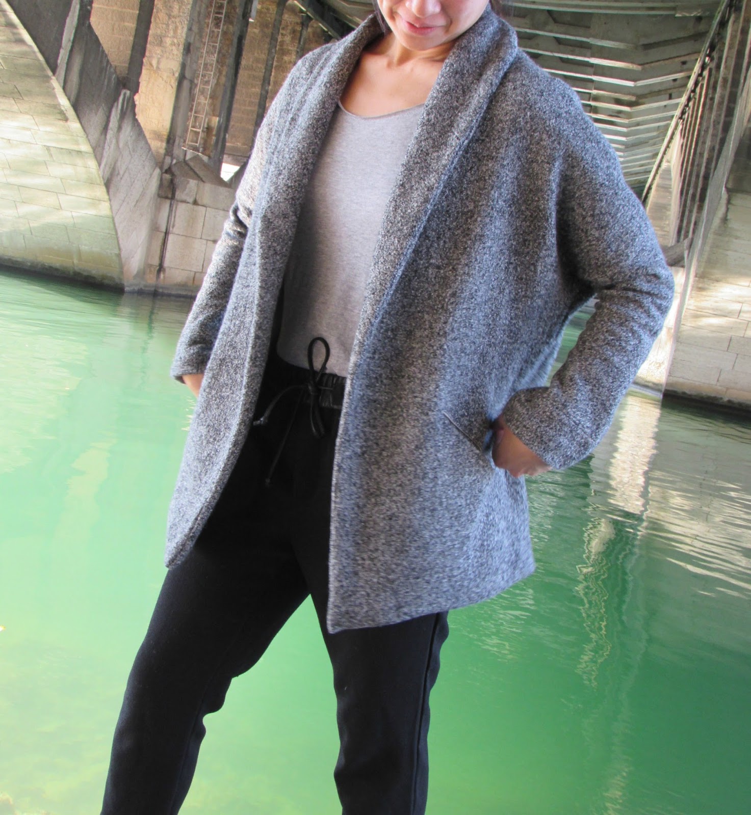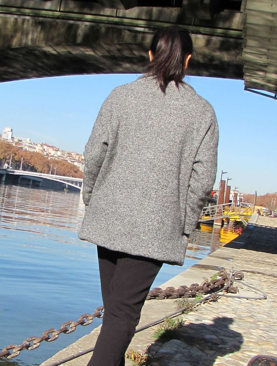 Ayant une volonté absolue ce tissu chiné by Pretty Mercerie, j’ai rajouté des bas de manche car je n’avais pas assez de tissu pour couper la longueur initiale des manches.