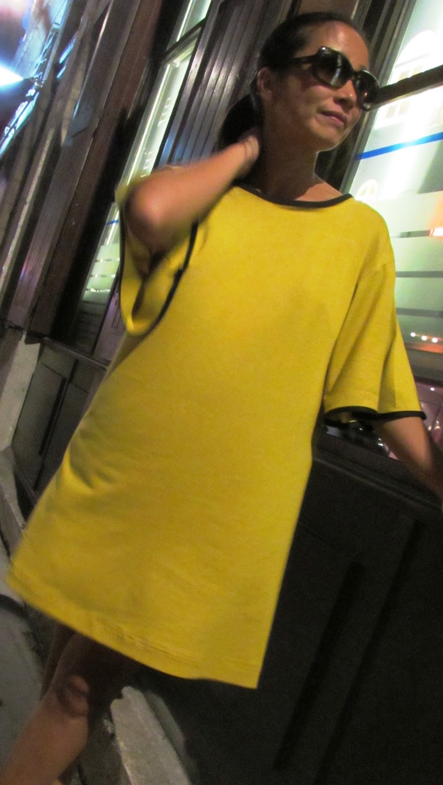 Fabric : “Modal mustard” jersey by The Sweet Mercerie (60in x 60in Width) – € 4.40/m