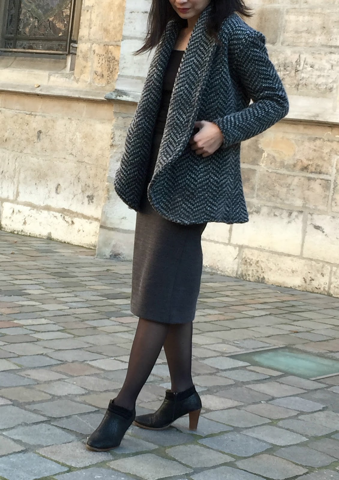 This pattern is really simple to make and déclinable at will as long as your fabric is consistent enough for optimum support of the shawl collar.