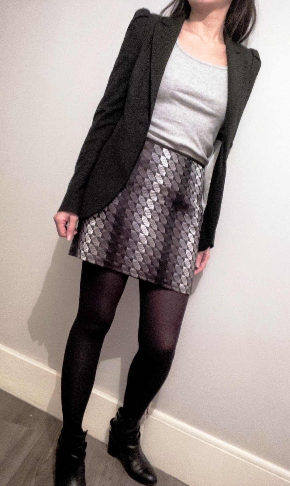 Important to me that these two parts can be wore separetely it may be so loaded regarding the print fabric. Thus the jacket can be associated with black trousers or dress (Vanessa Paul & Joe dress) … And the mini skirt with a solid color shirt or top;))) Again, always associate an original printed fabric with a more sober and this one is definitely speak of itself for a maximum of effect ;)))