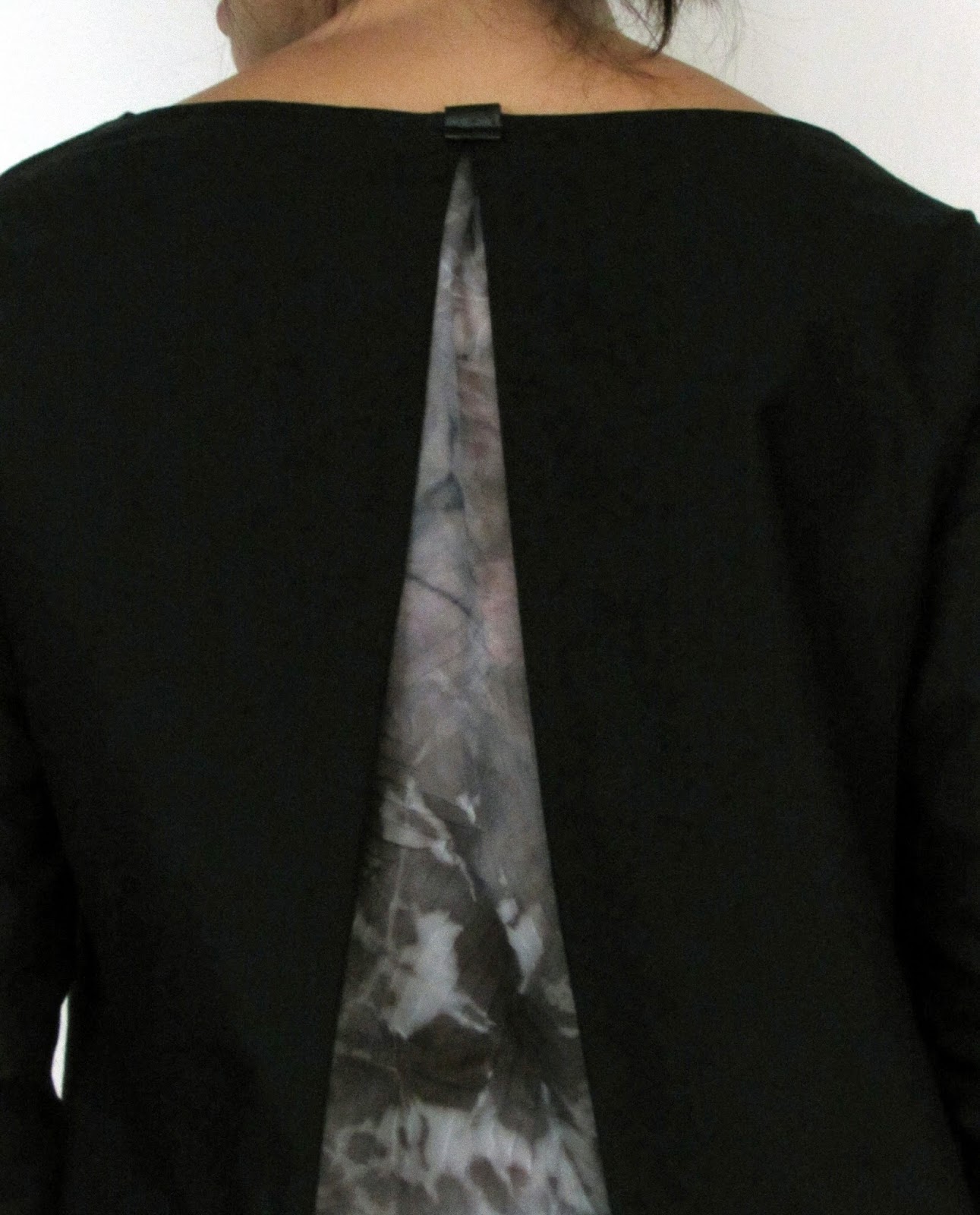 Ainsi j’ai découpé en 4 morceaux le dos (en lieu et place du dos découpé sur le pli) de telle sorte à pouvoir doubler les 2 pièces constituant le dos, sur le même principe que ma blouse Geometric 😉