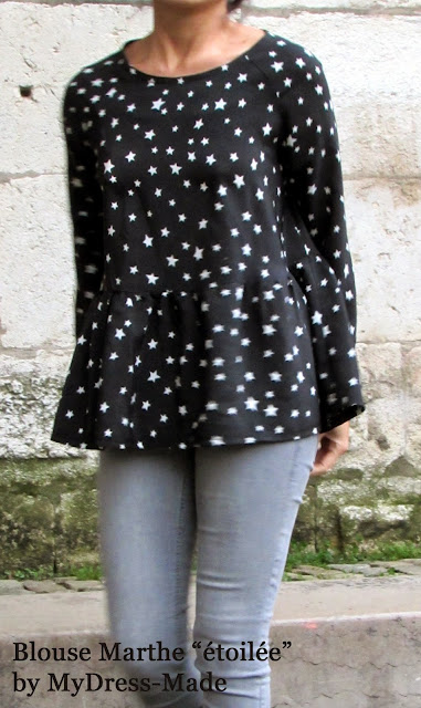Right out of the MARTHE blouse by République du chiffon, I flashed because it combines everything I love: Effect “loose” so peplum, Raglan sleeves: perfect to satisfy my obsession with yoke and easy to make (1/4 level) besides its “small” price;)))