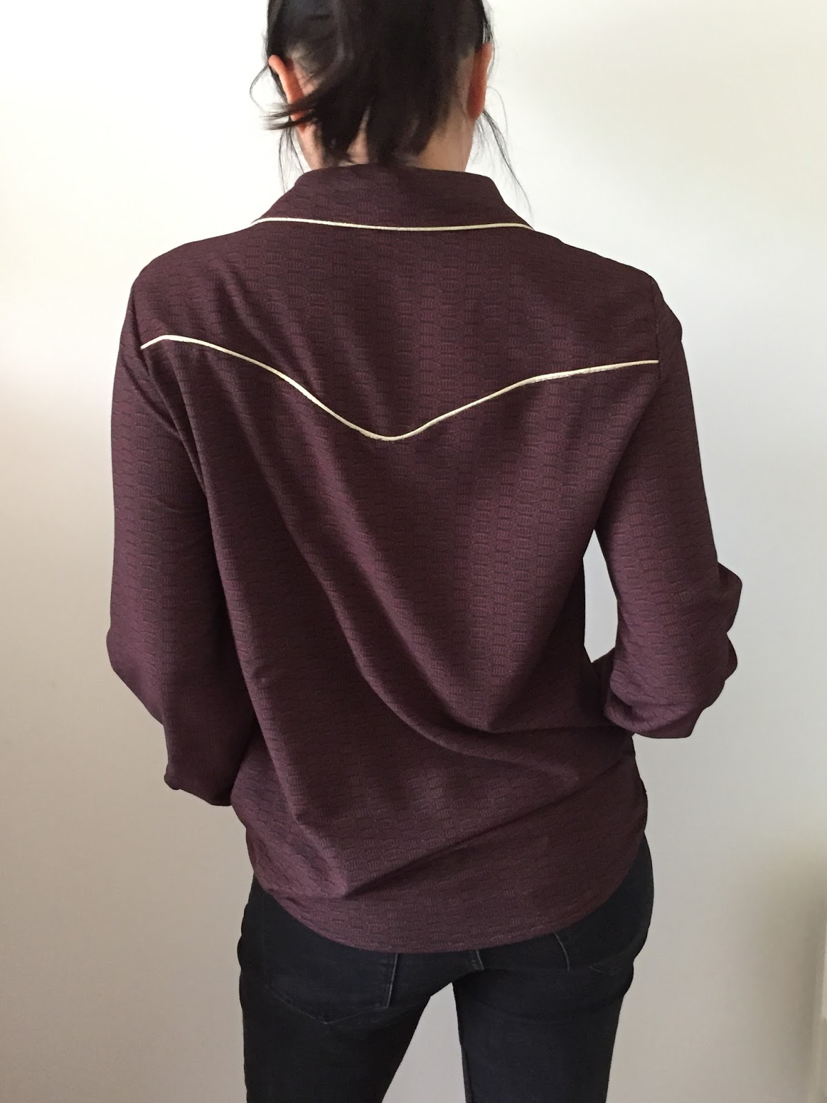 Just a few weeks I realized some shirts such as the Johanna shirt Republique du Chiffon in terracotta fabric – Atelier Brunette already look “western”. So I first hesitated to acquire the Jolaine shirt by République Du Chiffon I found she has a same style like Johanna. And looking more closely, I liked the originality of the piping inserts and especially as an asset to value each of the parts making up the shirt;)))