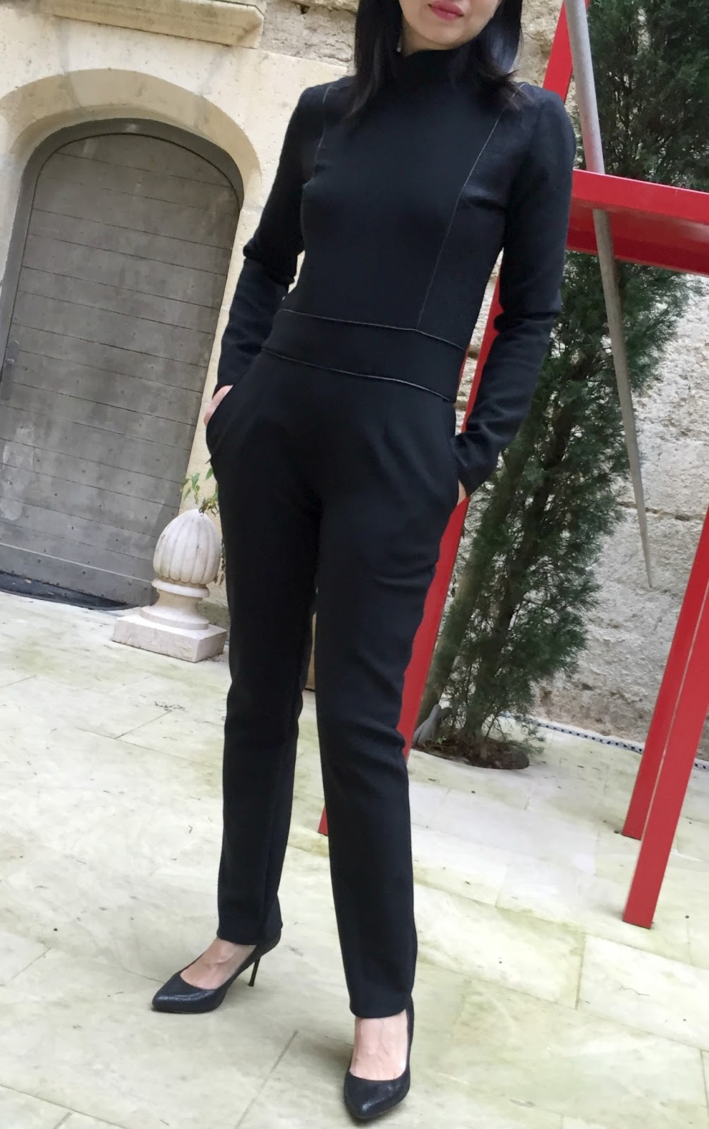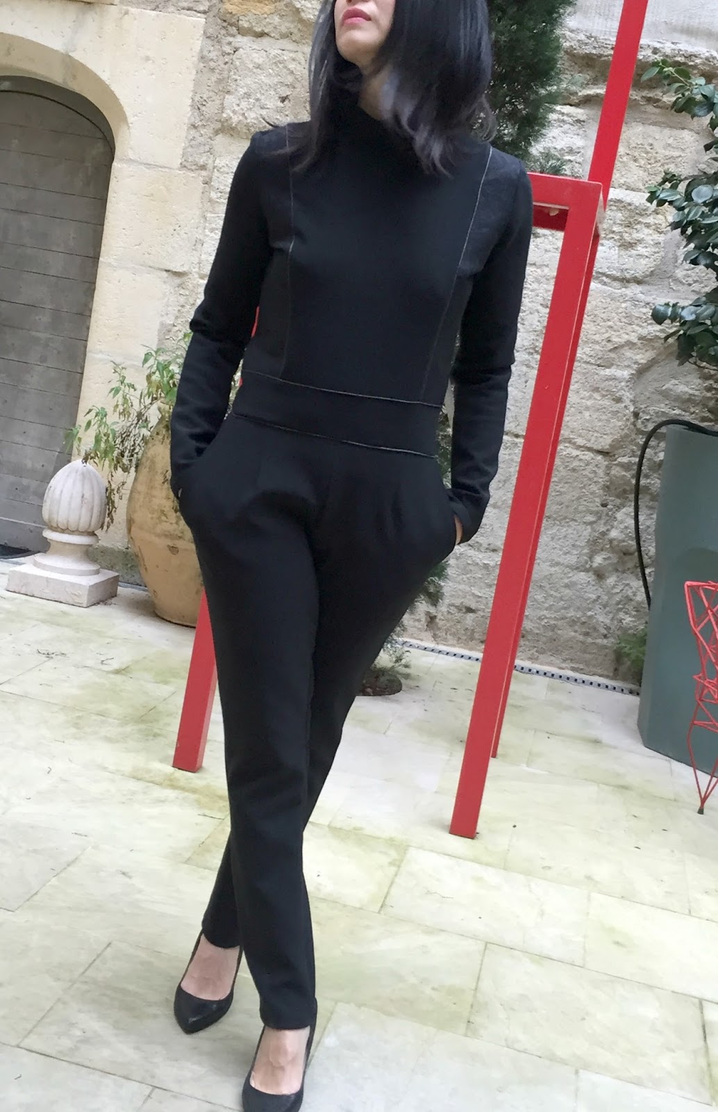 Le pantalon dispose d’une coupe cigarette, bien ajustée avec ses pinces et chic avec ses poches italiennes. Comme je vous l’indiquais, il est pour moi difficile de trouver la juste coupe (le dernier en date le pantalon Claude by RDC était bien ajusté également avec une taille haute) et franchement j’étais agréablement surprise une fois portée …NICKEL !!!! Ainsi, je pense refaire le pantalon seul car la coupe me convient bien, en mettant le zip sur le côté ;))) Le montage du pantalon ne présente aucune difficulté.