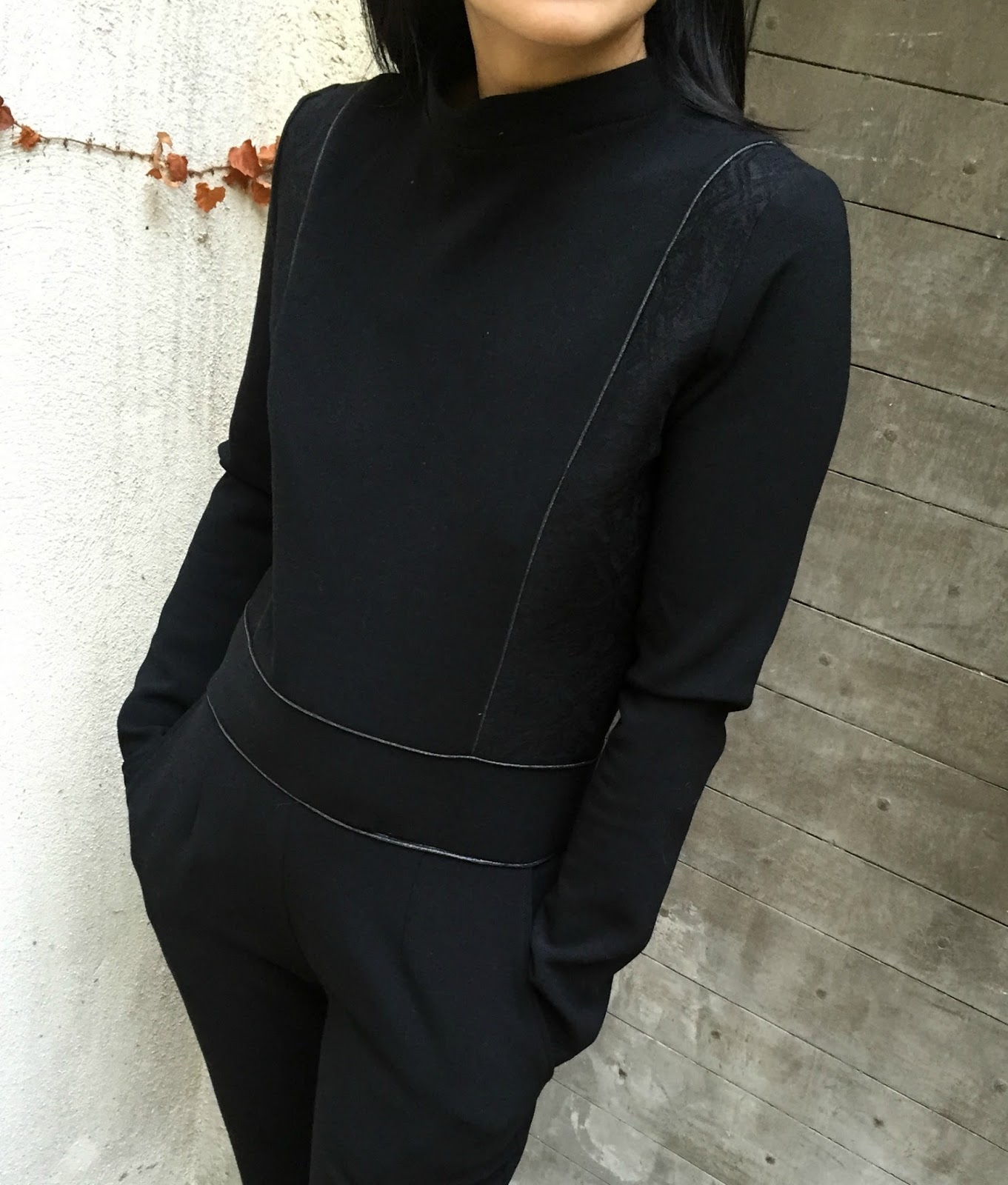 Normalement avec les repères, les raccords tombent justes néanmoins il est important de bien vérifier que les passepoils insérés sur le buste sont bien dans la continuité des pinces du pantalon (et ce malgré la présence de la ceinture ;)).