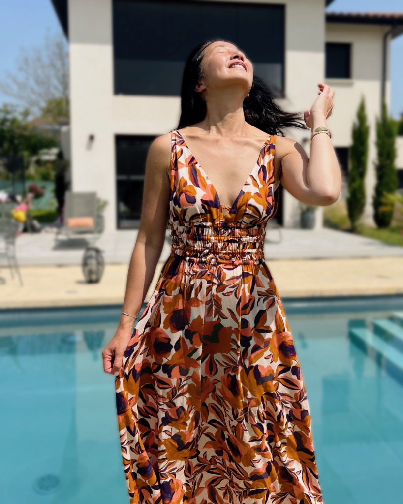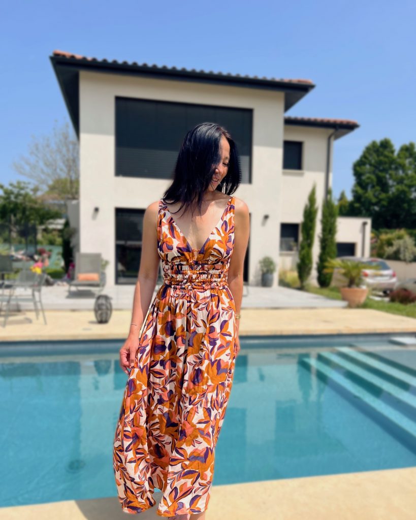 @__iammargot, qui porte la robe Carla de @mon_idylle_ avec le tissu SERENA.