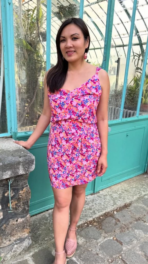@mailletai, qui porte le top Ava et la jupe Lisa du coffret couture BLOOM avec le tissu BLOOM.