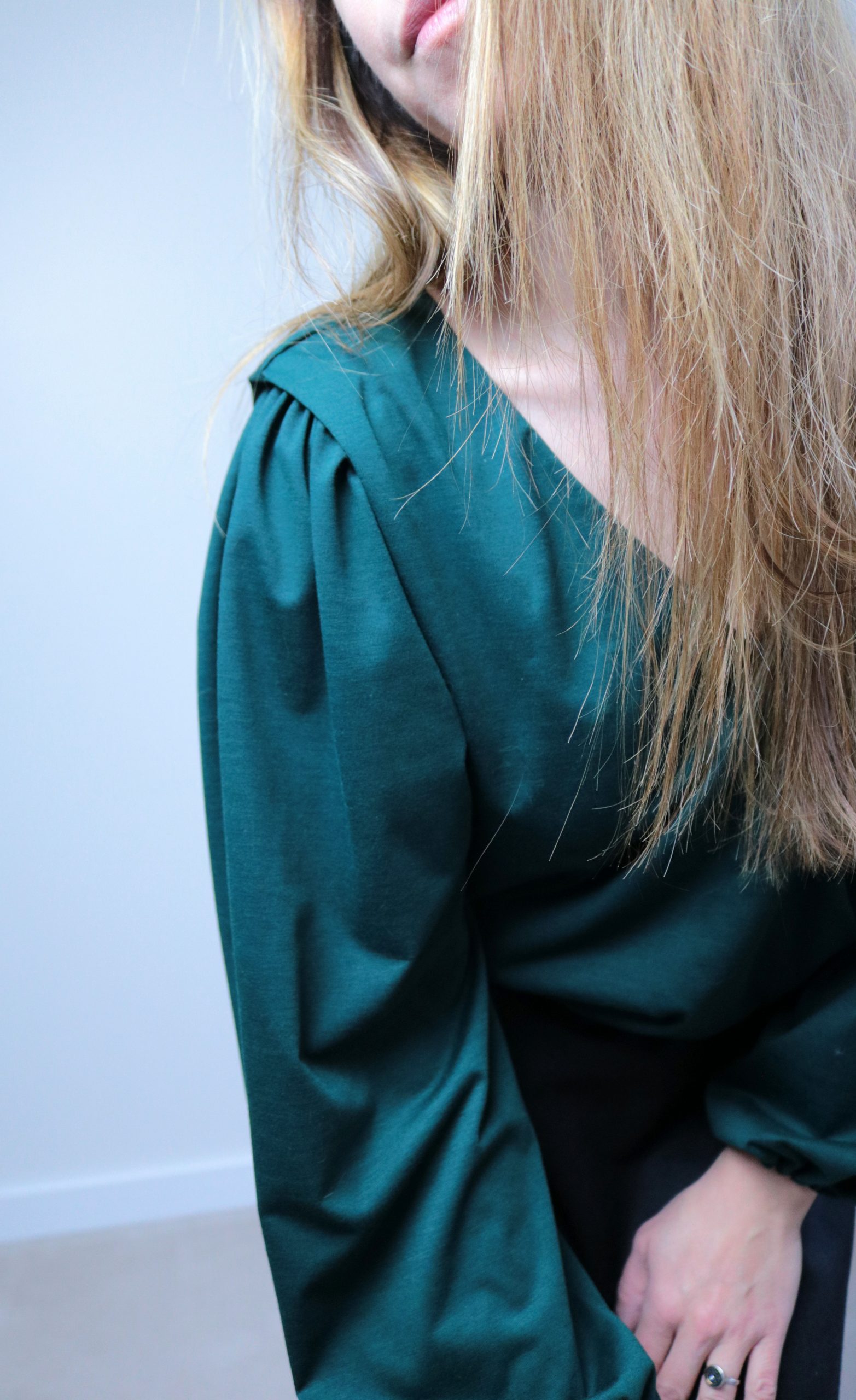 En plein été, j’avais en tête un modèle intemporel et féminin bien précis ou plutôt UN détail : le repli aux épaules. En effet, je rêvais d’un détail “so chic” qui ornerait nos jolies épaules sans avoir besoin d’épaulettes.