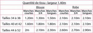 | Tour hanches | 92 | 96 | 100 | 104 | 108 | 112 |