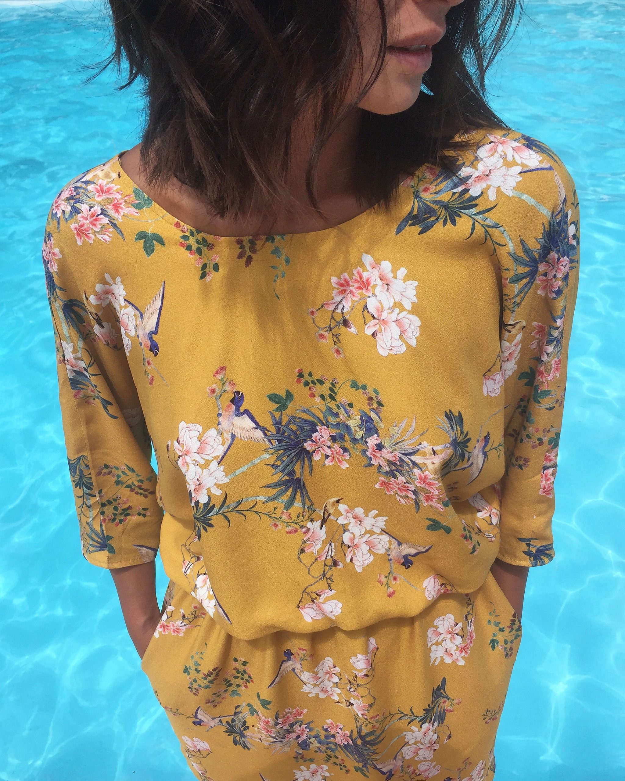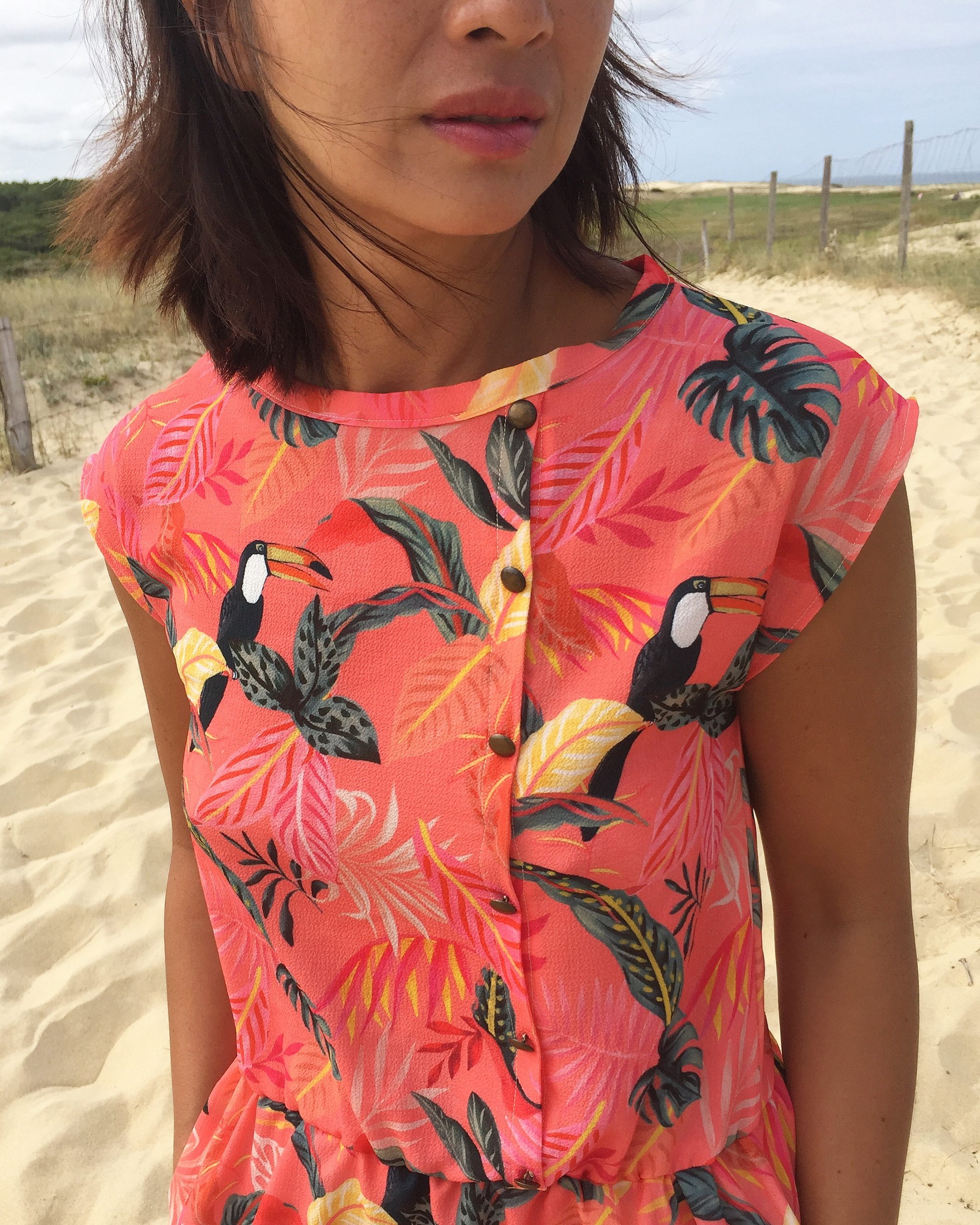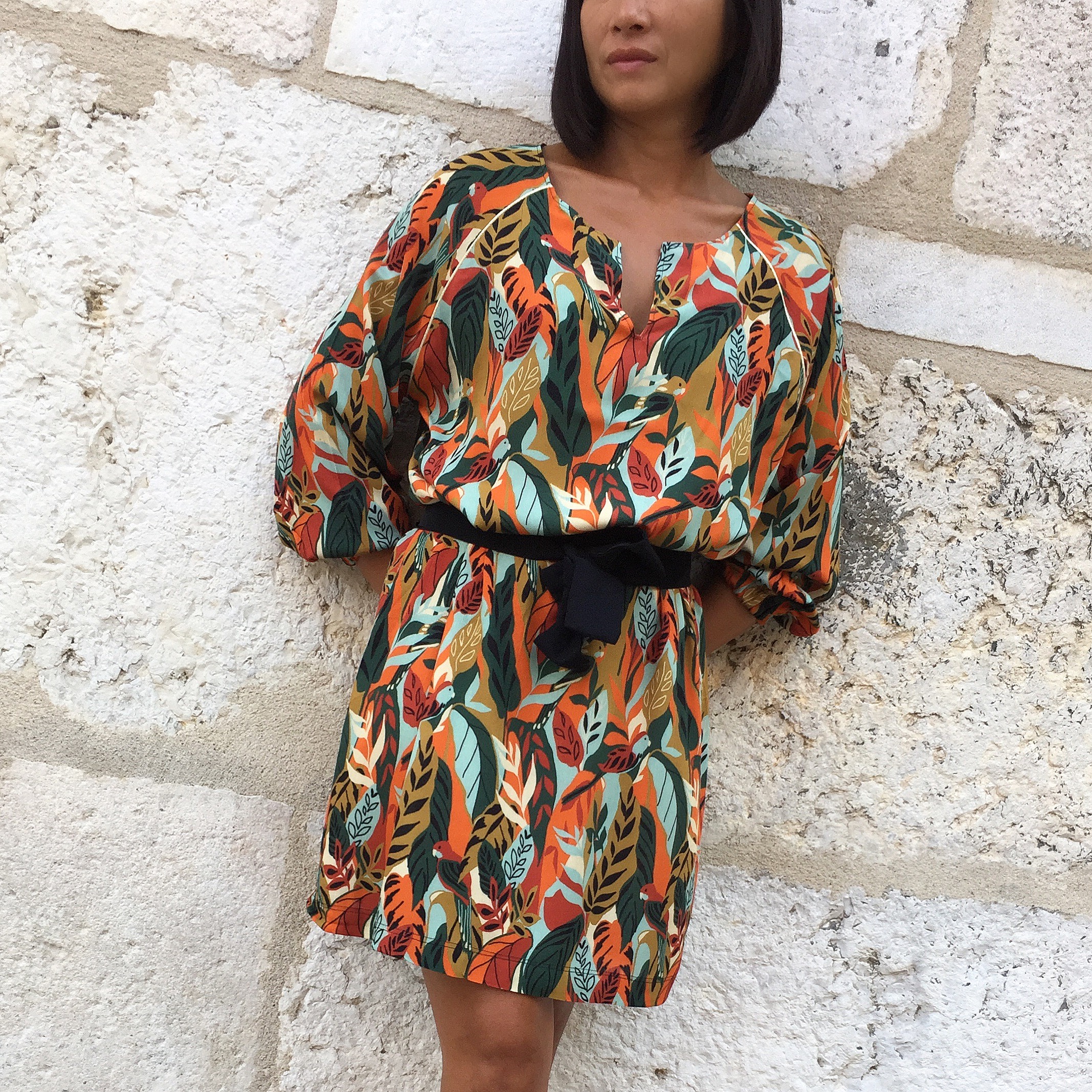 Bonjour, tout est très joli , très coloré et terriblement estival. J’ai flashé sur la robe Louise, j’aimais déjà le top, mais là en robe et avec ce tissu, c’est une merveille ! Une pièce unique !