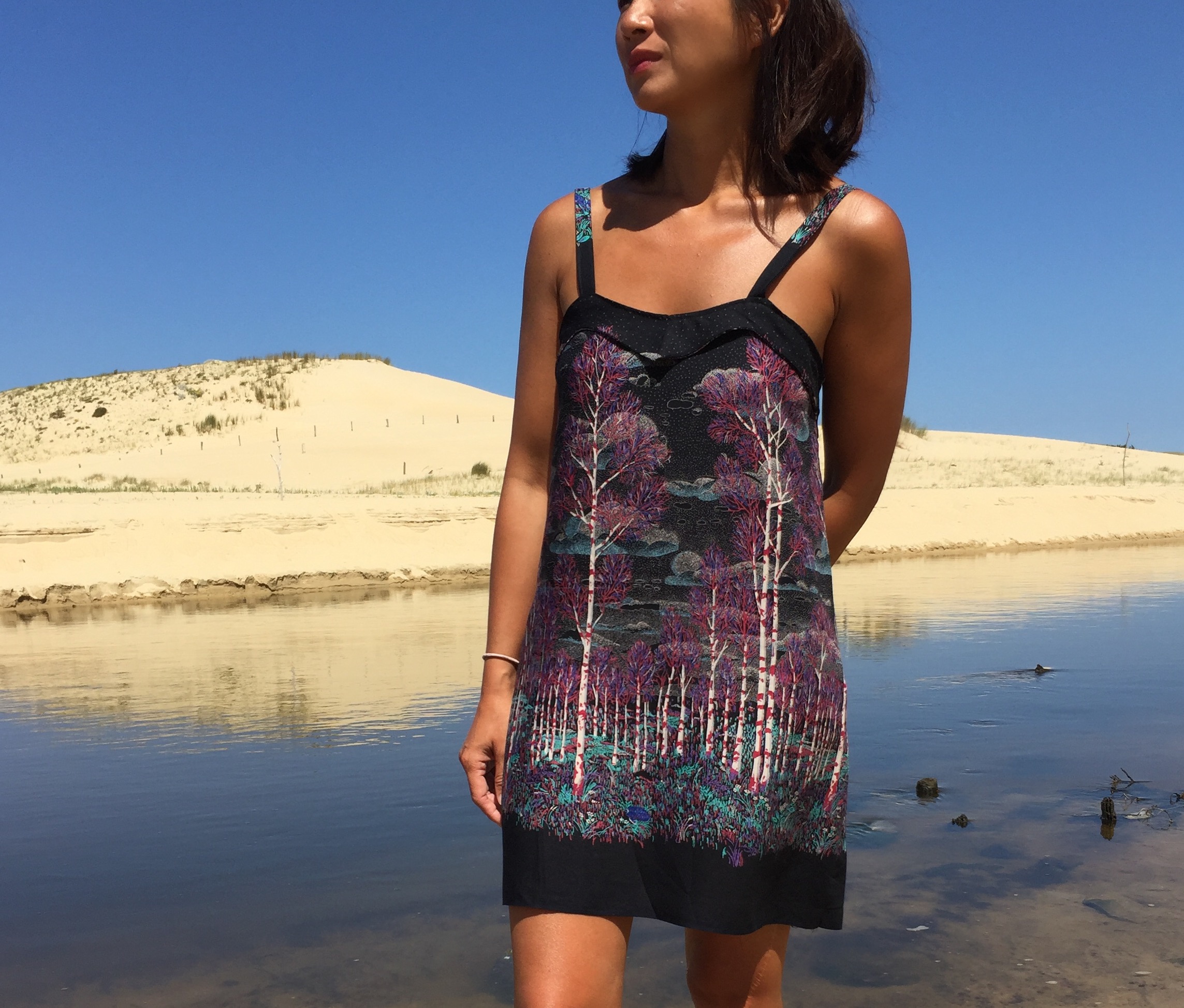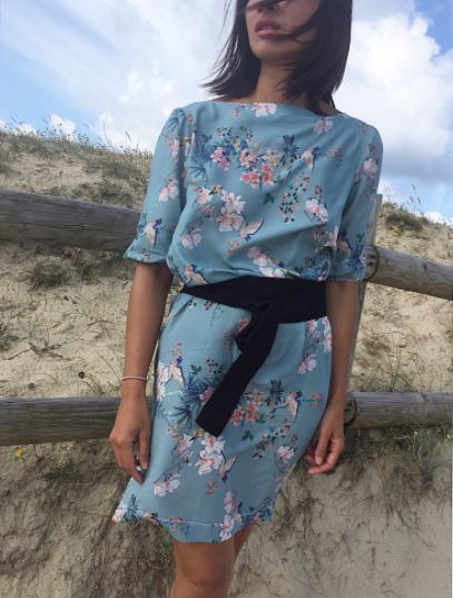 En parlant de la blouse Joy by IAM PATTERNS, ce fabuleux imprimé japonisant by Bennytex a inspiré une nouvelle déclinaison “robe” que j’ai agrémenté d’une ceinture pour un style so so chic ! N’hésitez pas à revoir les détails de conception de la blouse JOY, que j’ai simplement rallongé de 40 cm pour obtenir la version robe ;))