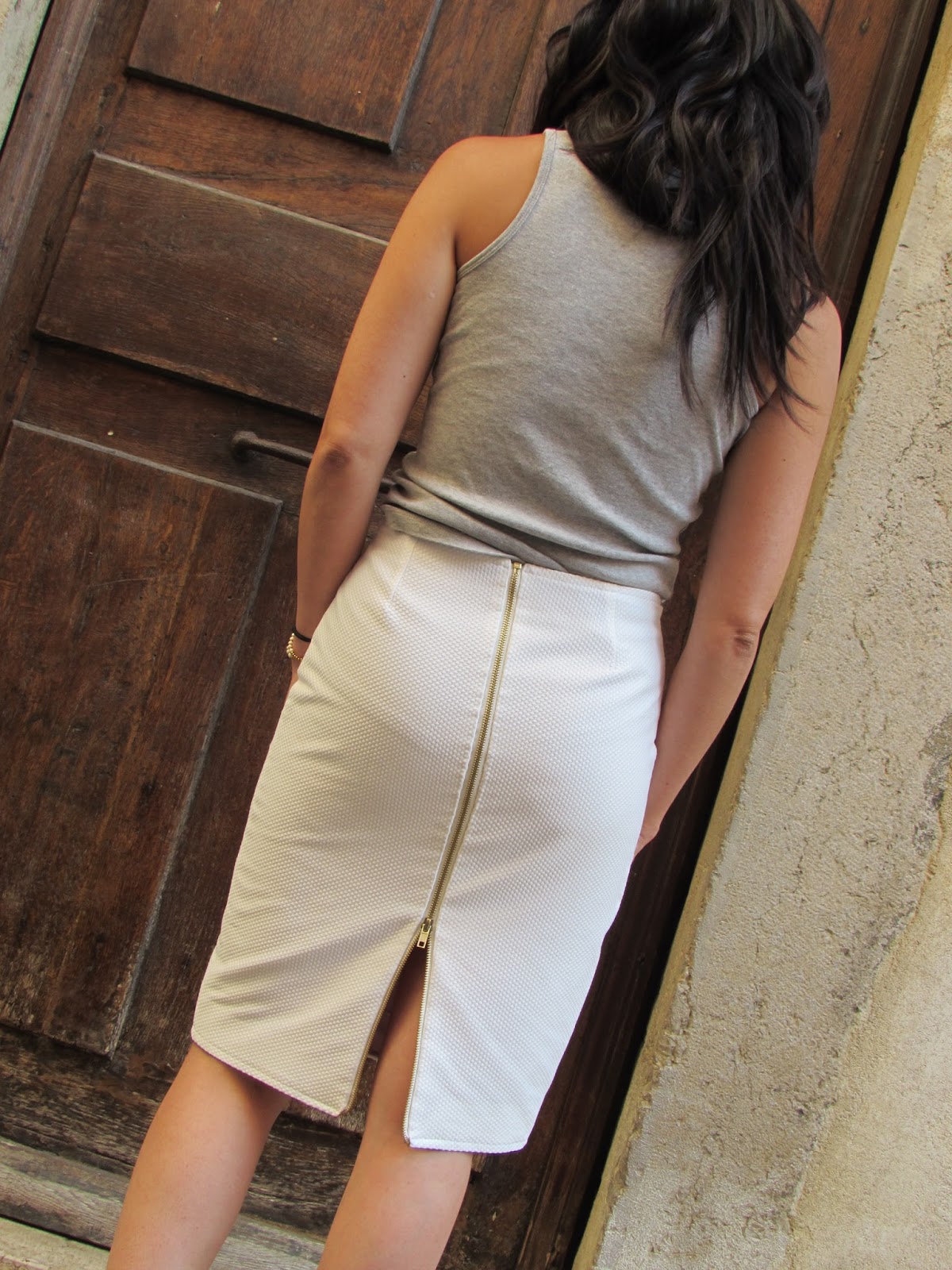 After “designed” in Prada fabric, it is my great pleasure to present the “original” version by Vanessa Pouzet … In a sublime white jacquard by Pretty Mercerie so chic with brass zip to face the curves of the buttocks;)) ) I usually systematically seeks to test a fabric différantiant for uniqueness.
