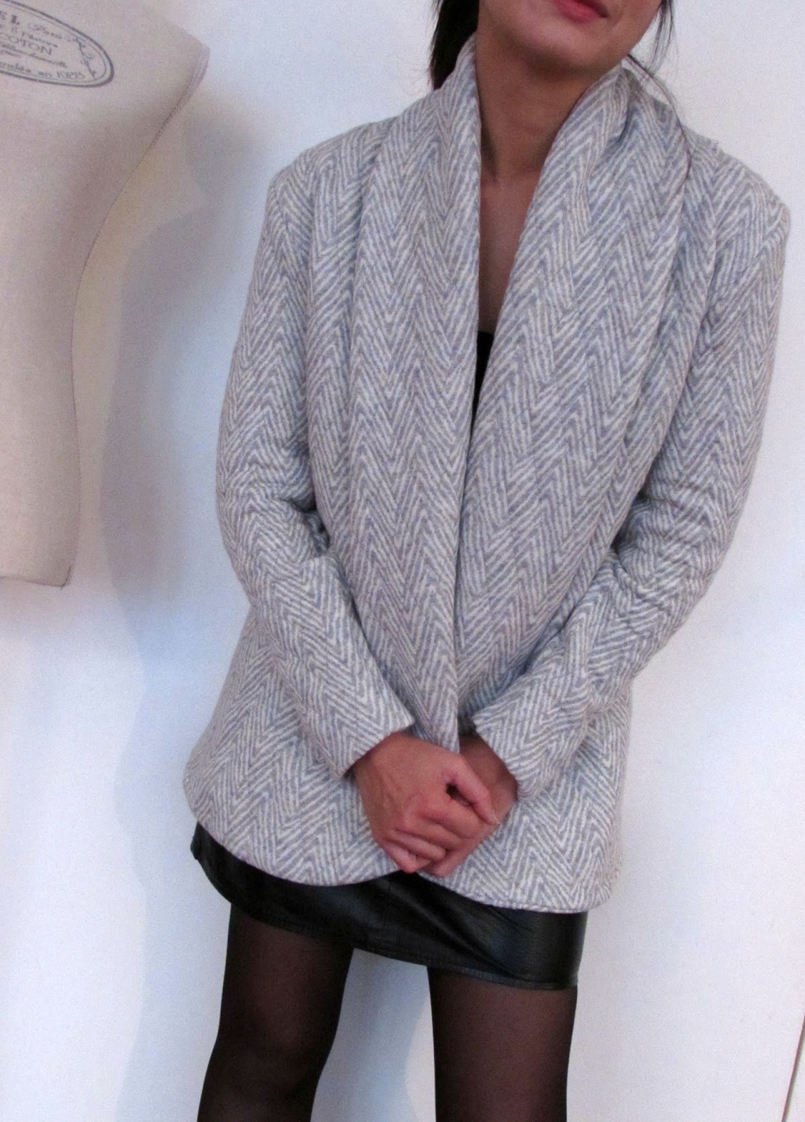 Si vous optez pour le tweed il est nécessaire qu il soit suffisamment consistant minimum 300g pour un maintien optimal du col châle ;)))