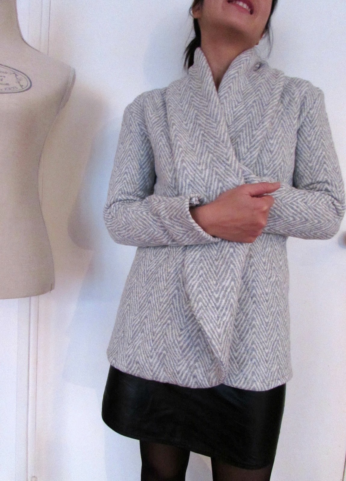 When the “women duo” proposed me to test Aime comme Madawan by CousettexAimecommeMarie and as I saw the different versions worn by Marie, the charm operated immediatly !!! What for ? The cut is in total adequation with current trends, this shawl collar and rounded edges !!!! In short it is timely with this freezing cold … Need sweetness and comfort …