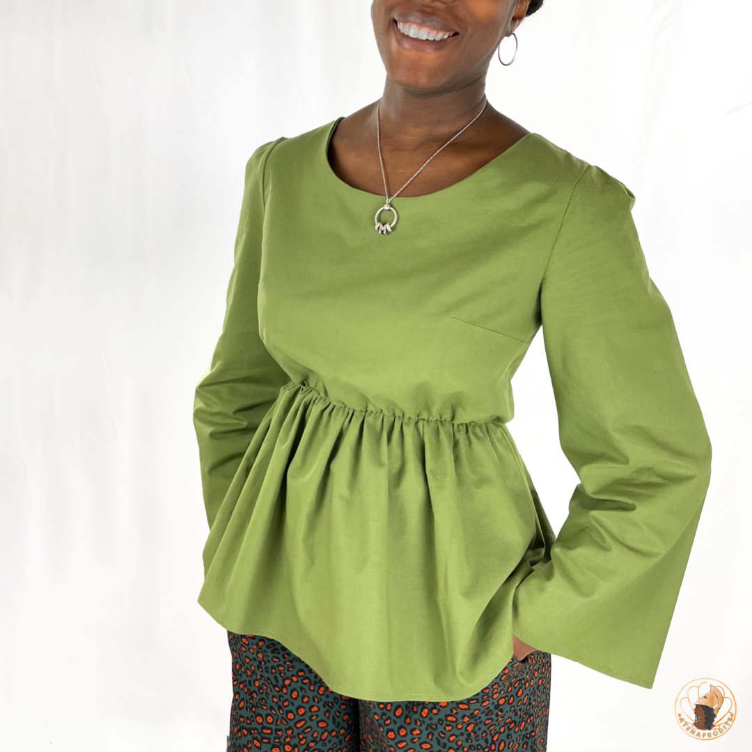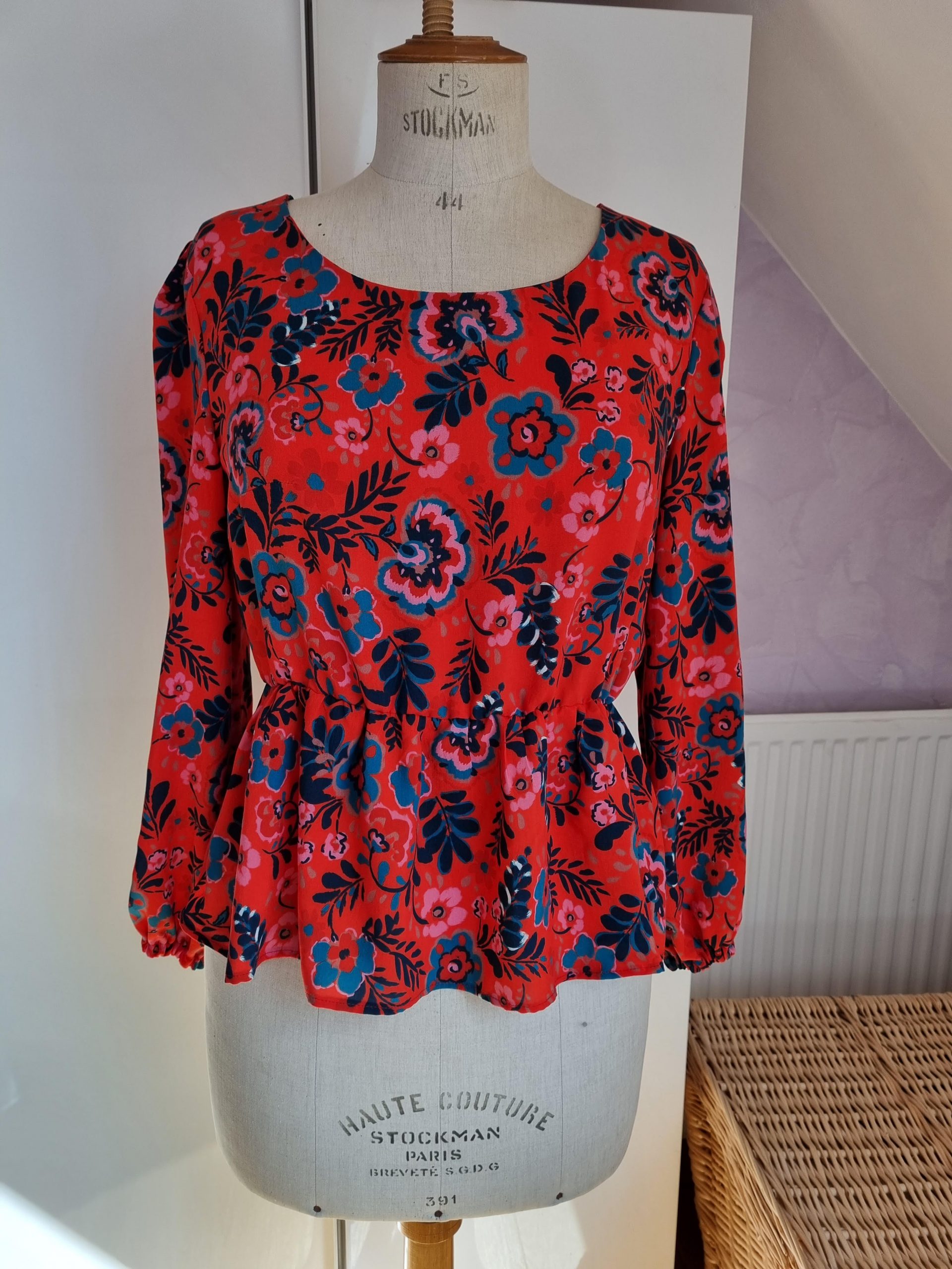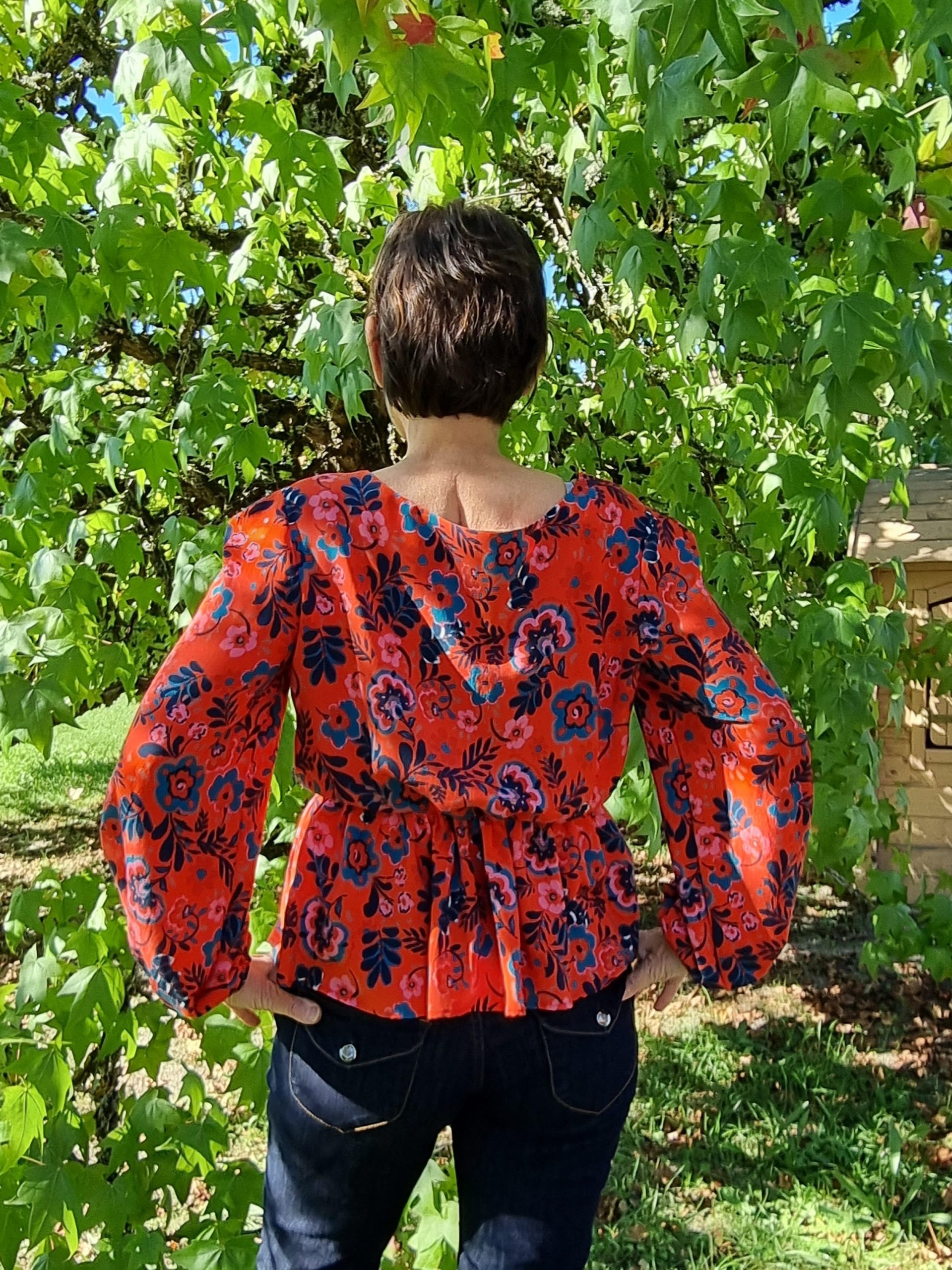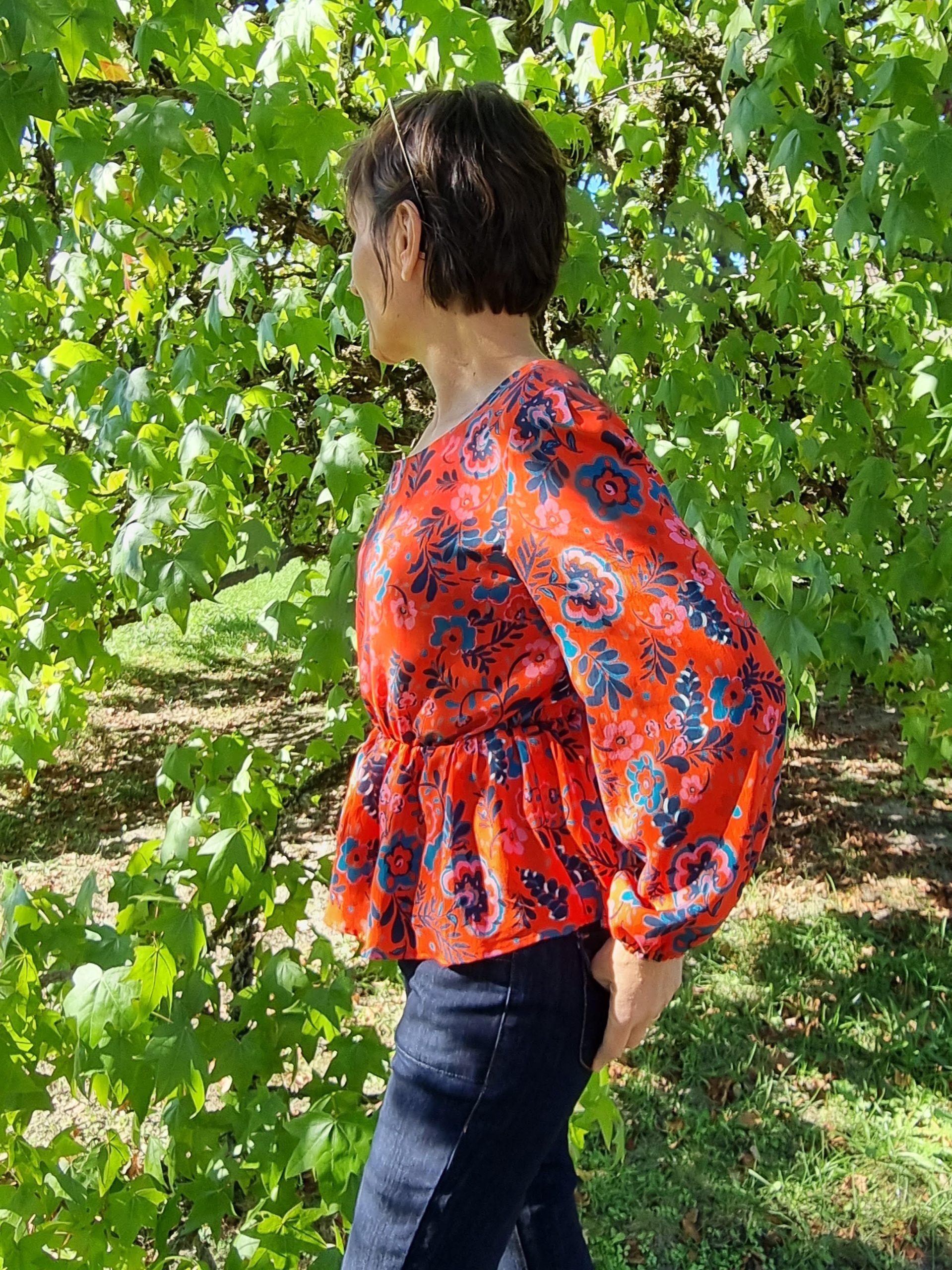 On adore la blouse Caméléon, version basque (sans élastique) avec manches “ballon” cousue par Pascale.