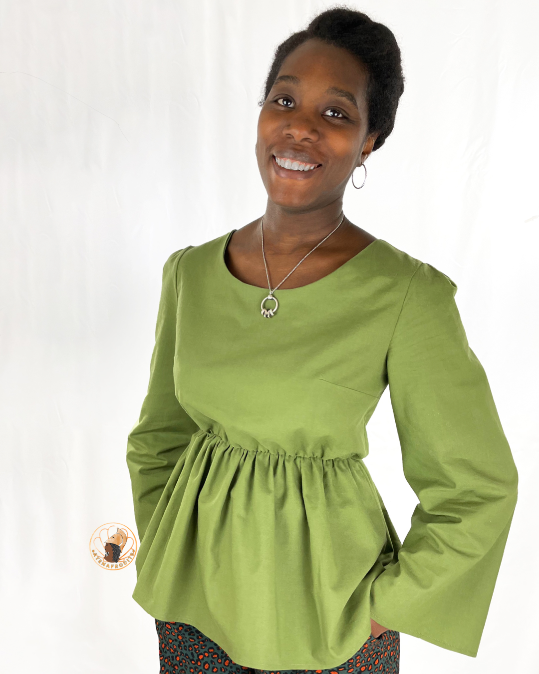 Pour la version blouse Caméléon avec basque, il ne sera pas nécessaire d’ajouter d’élastique pour un confort optimal.