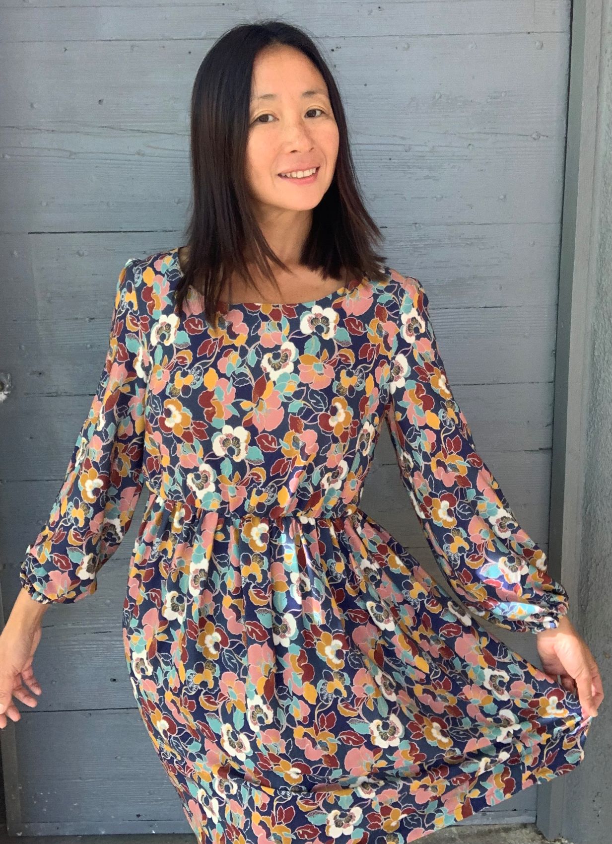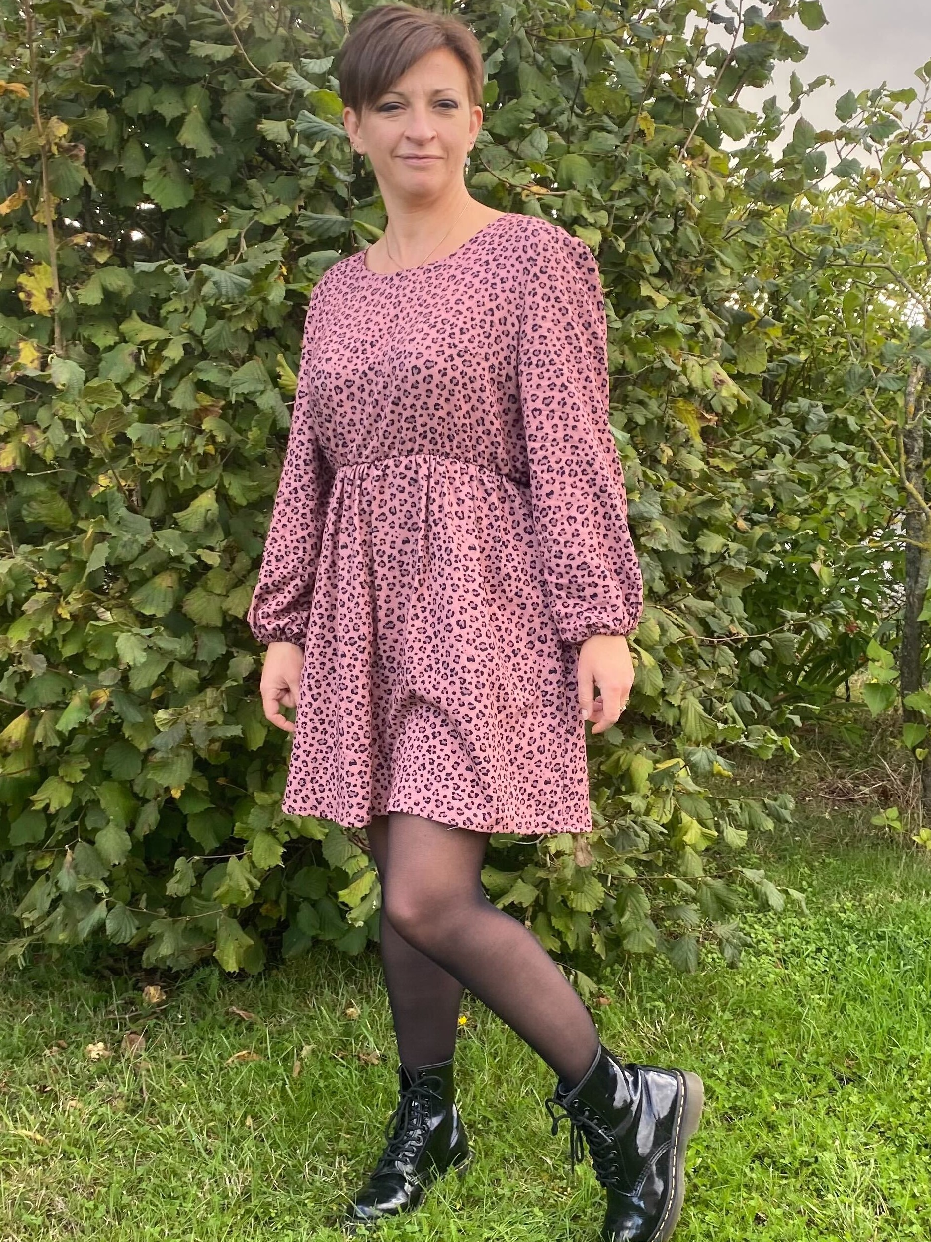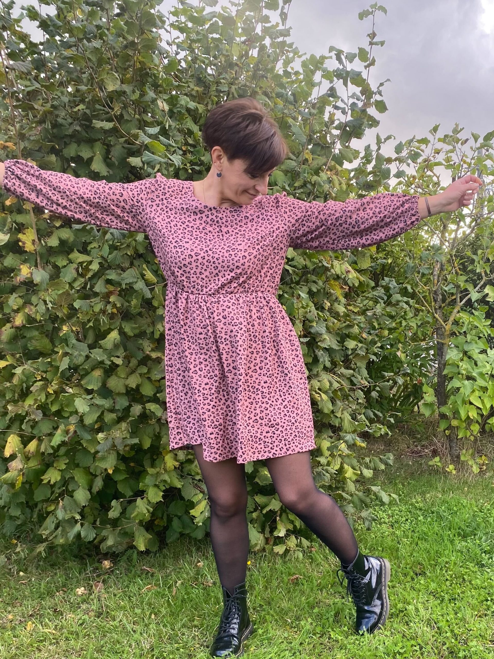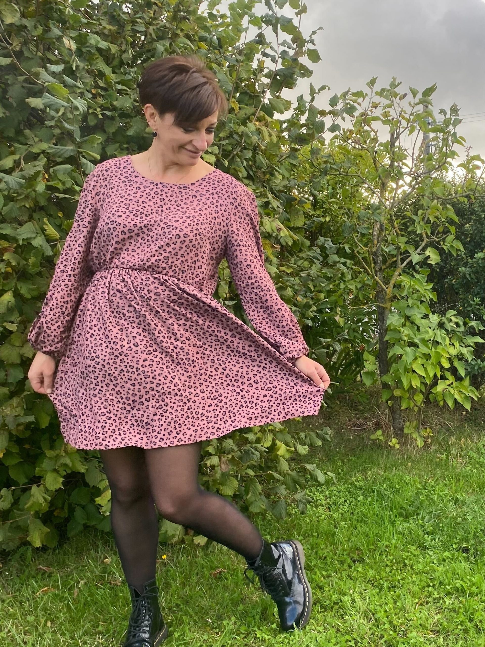On adore Caméléon, robe version basque (sans élastique) avec manches “ballon” cousue par @lemanegeabulle