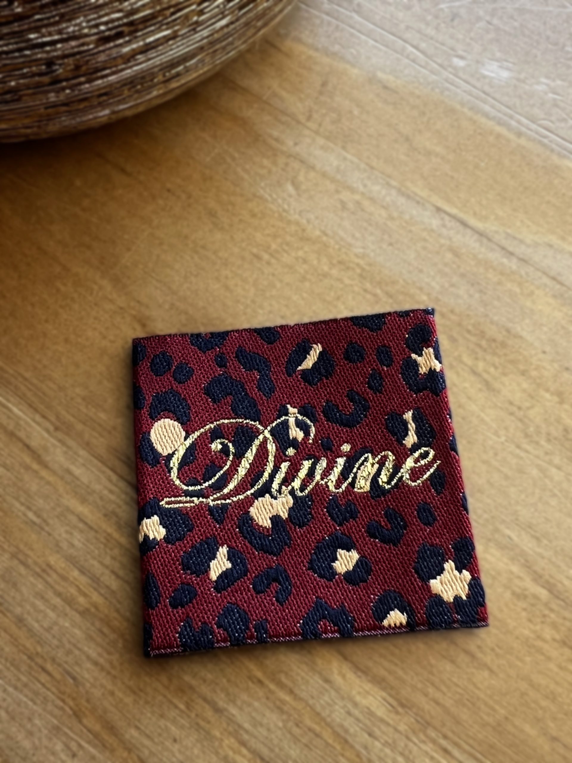 Affirmez le style de vos créations avec Divine Léopard Bordeaux, une étiquette à coudre tissée en France au motif léopard revisité dans des nuances de bordeaux et marine. Élégante et originale, cette étiquette tissée apporte une finition moderne et raffinée à vos vêtements et accessoires cousus main. Avec son fond bordeaux, ses touches de nude profond et son inscription dorée, Divine Léopard Bordeaux est idéale pour personnaliser une robe, une blouse, une veste, un gilet, une trousse ou tout autre projet couture. Son design félin et tendance en fait le détail parfait pour signer vos réalisations avec caractère.