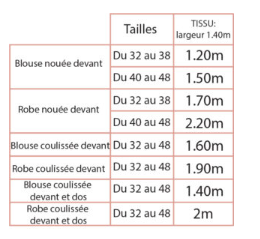 | Tour hanches | 92 | 96 | 100 | 104 | 108 | 112 |