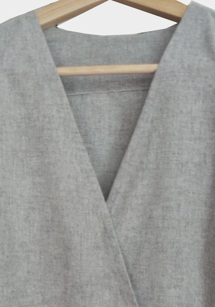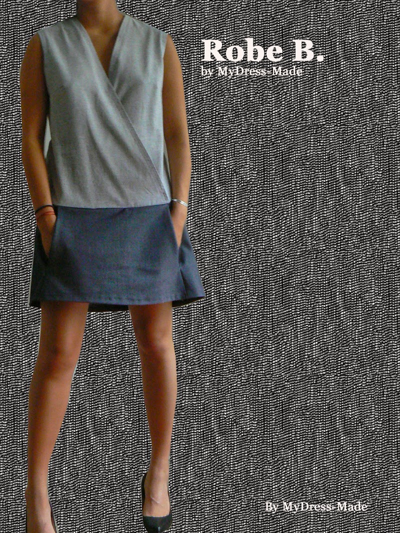 Elle a sélectionné la robe croisée de BURDA (édité ce mois ci) : une valeur sûre et intemporelle (elle pourra la porter à nouveau l’année prochaine).  Ainsi, j’ai décidé d’associer un coton chambray gris clair pour assimiler ce “cache cœur” à une chemise et le denim stretch, déjà utilisé sur la veste Michelle pour répondre à l’attente de confort (sans compter qu’il est très agréable à coudre).