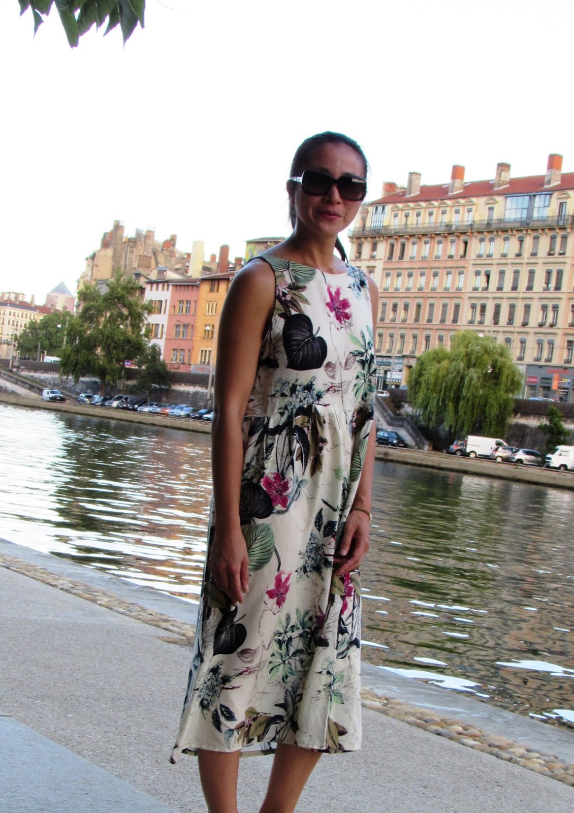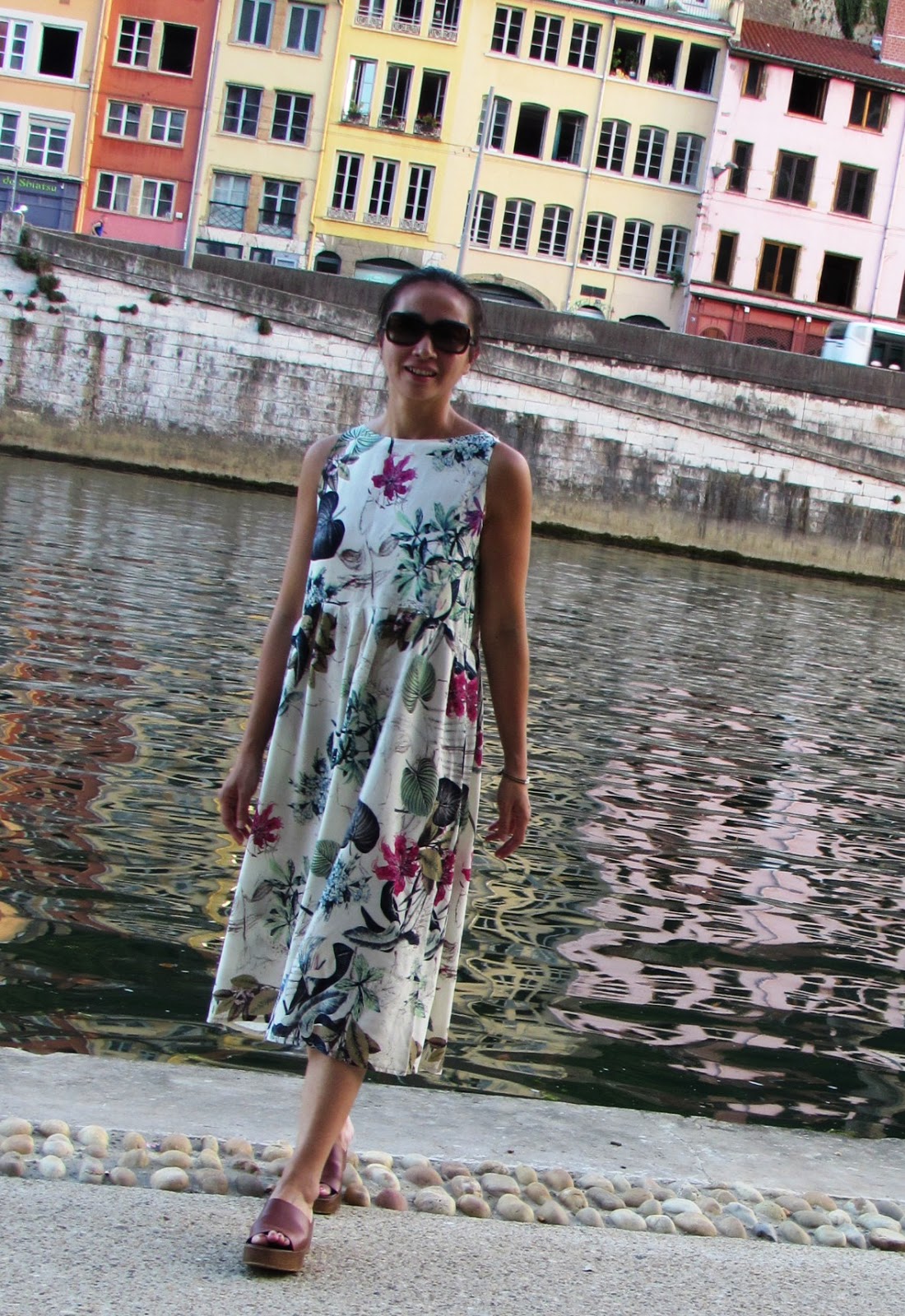 Pretty Mercerie, ces “gorgeous tropical flowers” et ses associations couleurs m’ont fait craquer de suite sans savoir ce que j’allais en faire… Enfin si une robe longue tout simplement pour mettre en exergue un “pan” de ce fantastique imprimé et jouer sur la fluidité.
