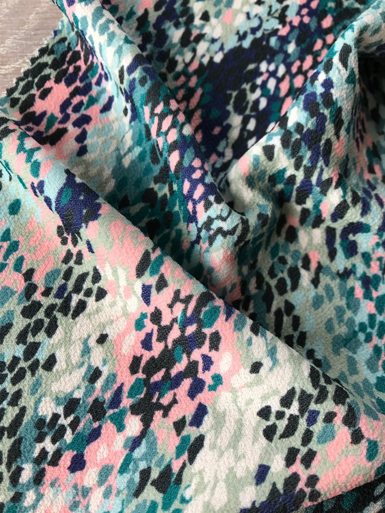 Comme indiqué sur mon premier article consacré à la robe Franklin by Coralie Bijasson x Linna Morata, c’est un modèle qui reste globalement accessible pour l’effet obtenu. Aussi vous trouverez sur le blog Mondial Tissus un super tuto commenté par Nathalie alias Linna Morata où chaque étape est bien détaillée. Toutes les étapes de réalisation relatives à la version “blouse” restent identiques à la déclinaison robe sauf qu’il vous suffira de couper à la longueur indiquée. C’est aussi un modèle qui permet l’accès à une large palette de tissus en effet après le jersey Linna Morata « Belem » le choix du crêpe “Animals Marine et rose” by Printstand est un régal à coudre ;))))))