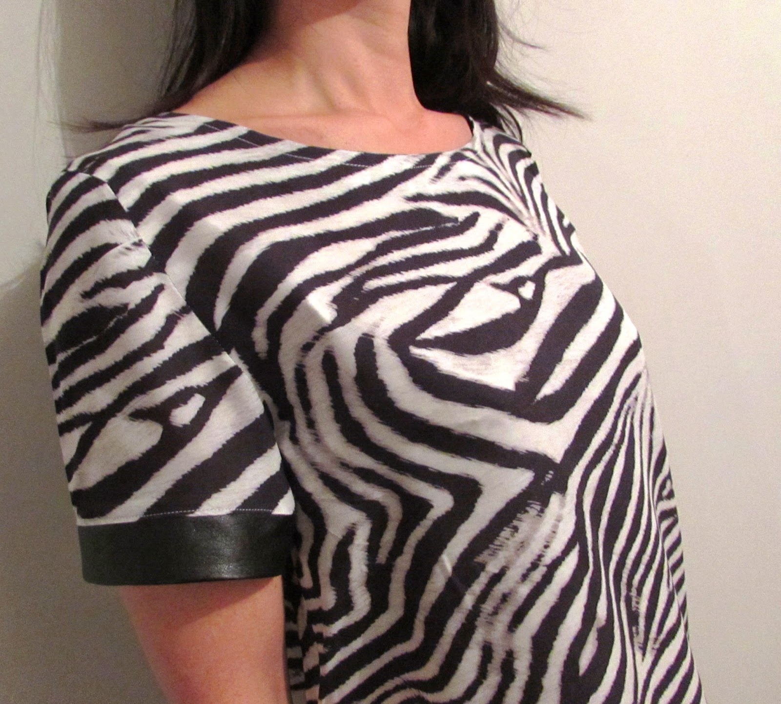 For this first interpretation, I chose the originality zebra print by The Sweet Mercerie and I decided to play on the detailed sleeves with black faux leather.