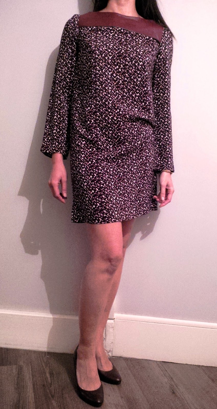 For this second Vanessa version including yoke, I imagined Vanessa with this printed burgundy / black silk by BENNYTEX for its fluidity (and my obsession of the moment: burgundy ;)). For the yoke I really wanted to try and dare the burgundy silk and leather combination with doubt about the thickness.