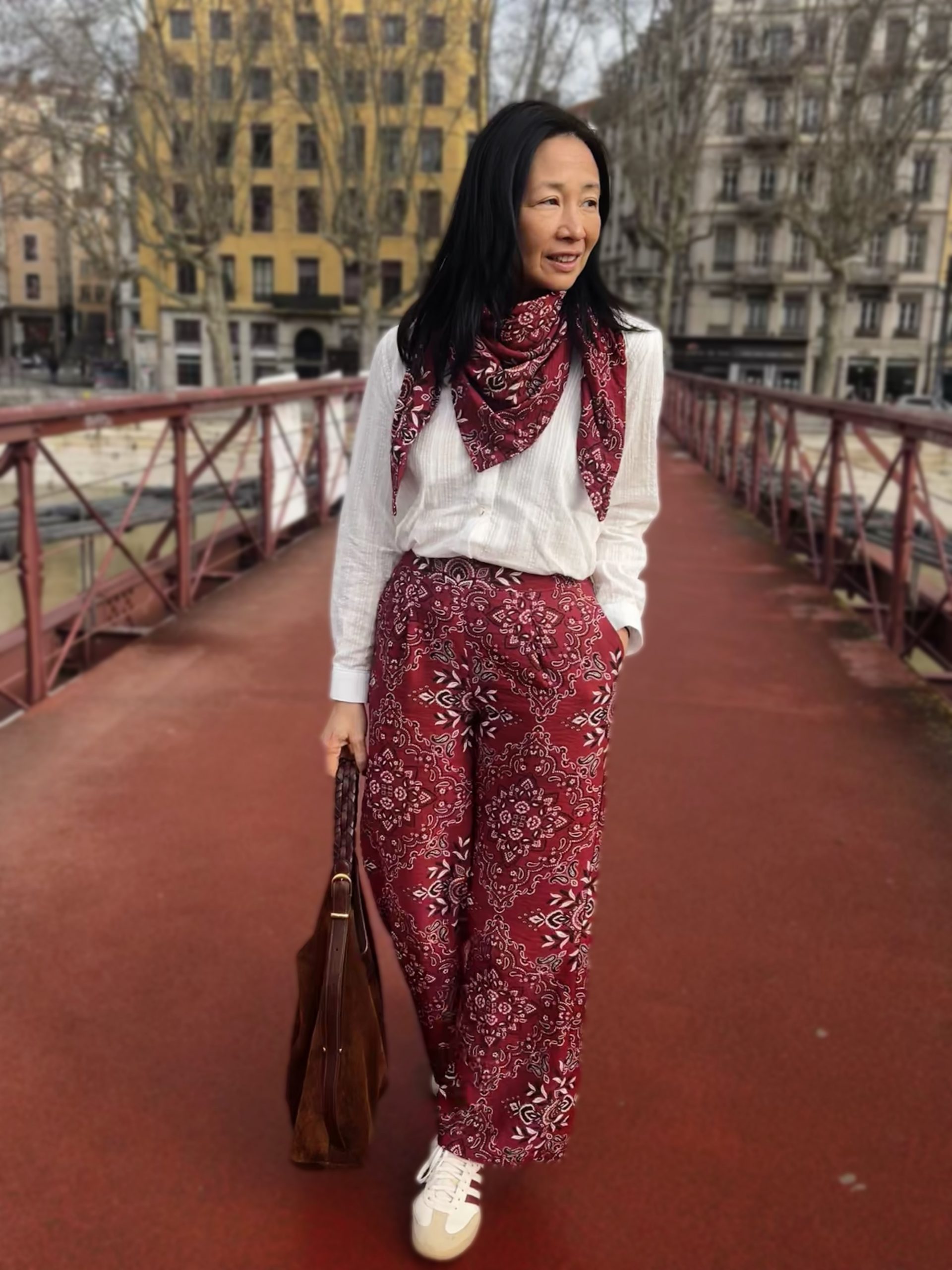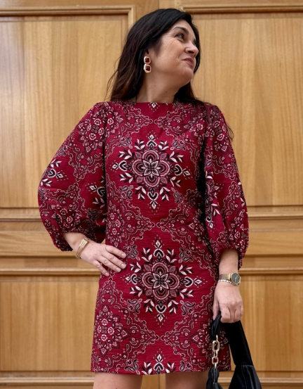 Le tissu Scarlett, avec son motif bandana iconique et sa teinte grenat signature, donne du caractère sans effort : une pièce “waouh” idéale pour la mi-saison et les looks du quotidien.