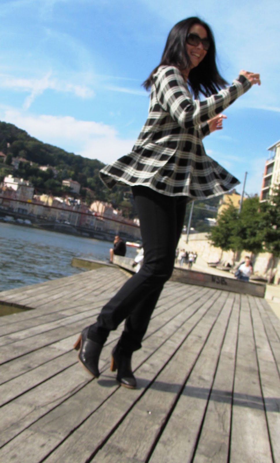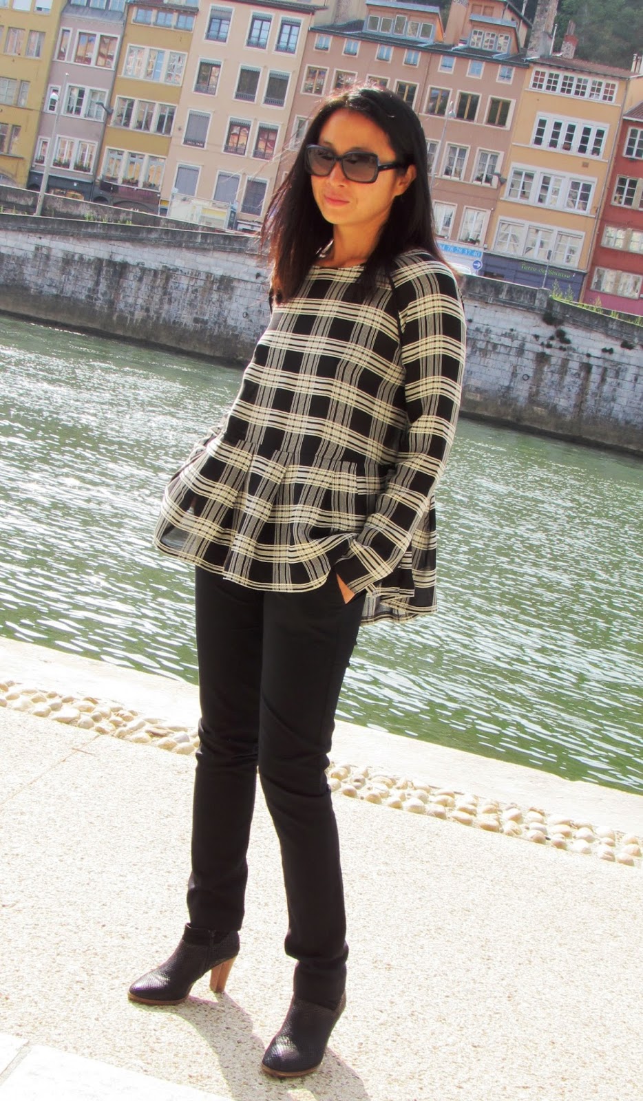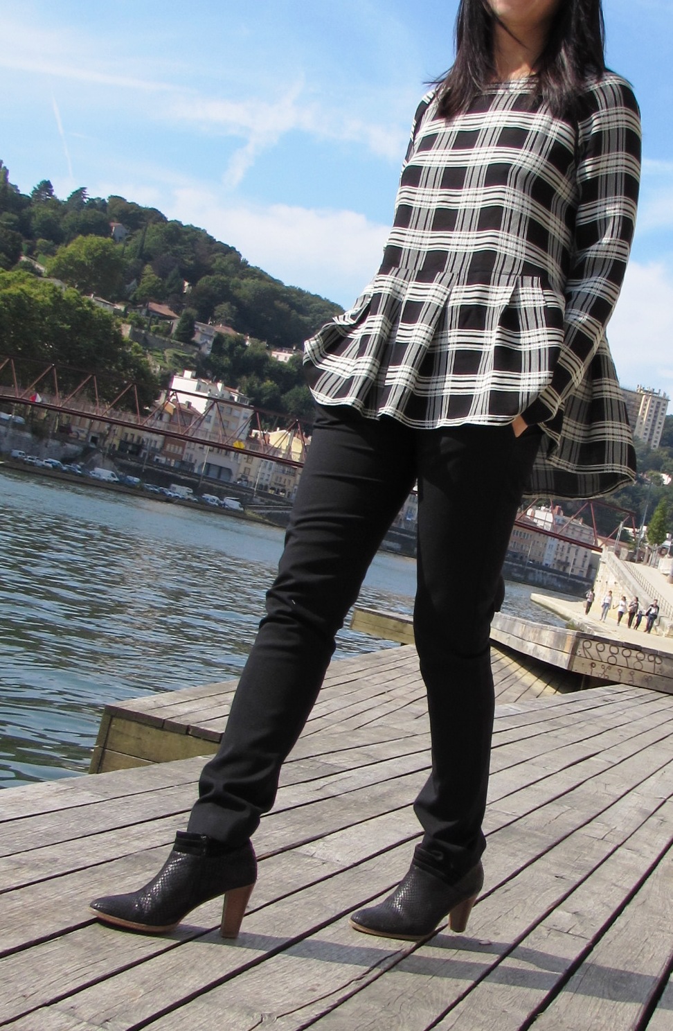 | Blouse Marthe carreaux – Pantalon smoking The Kooples – Bottines Sezanne |