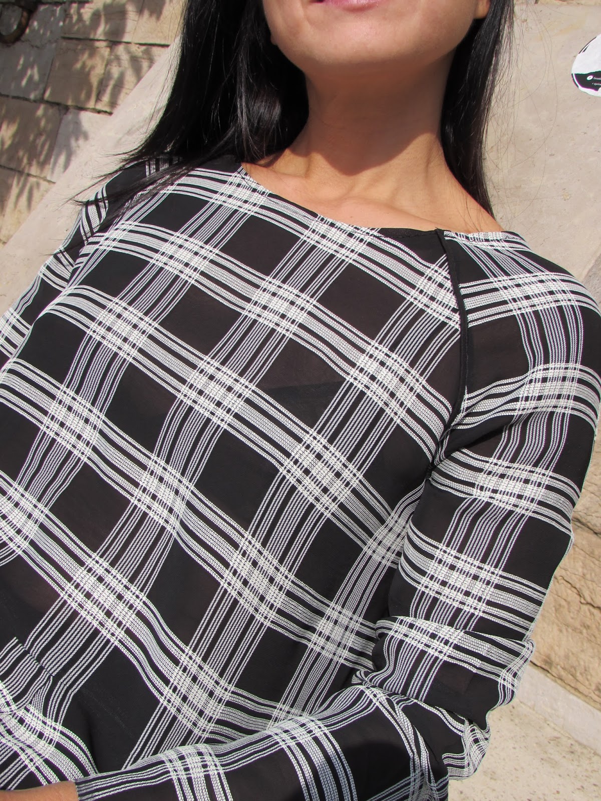 C'est vraiment très joli ce contraste entre la fluidité du tissu et de la coupe et le graphisme des carreaux.